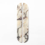 Striking and sculptural, the Angel handle in Viola, Travertine, and Verde Marble makes a refined statement with its sweeping form and romantic veining. Offering visual drama without overpowering the softness of its curved design. The honed finish adds a muted, luxurious texture that elevates the stone’s inherent beauty.