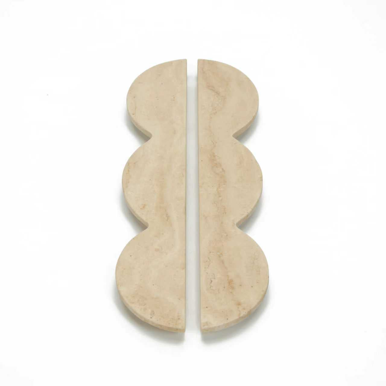 Elegant and architectural, this sculpted marble handle makes a refined statement through form and material. Available in Monet and Travertine marble, each piece showcases soft, organic veining across a creamy, stone-rich base—ensuring no two handles are ever the same. Finished with a smooth honed surface, it offers a tactile, understated luxury that brings depth, balance, and timeless sophistication to cabinetry and bespoke joinery.